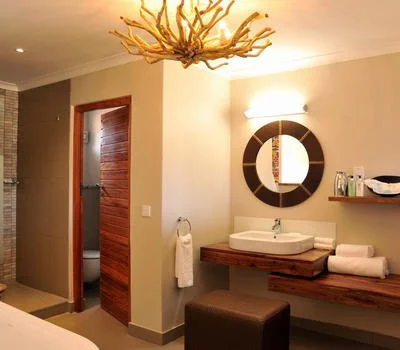 zwei und drei Schlafzimmern, ideal für Familien und kleine Gruppen, die stilvollen Komfort, Privatsphäre und Platz suchen, verfügen über eine Lounge und eine Terrasse mit Blick auf ein kleines Wasserloch, das von Buschböcken, Warzenschweinen und Vögeln besucht wird.