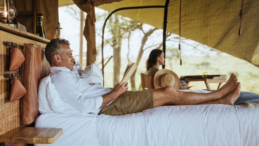 Das Wayo Serengeti Green Camp verfolgt die Wanderung von Norden nach Süden im Serengeti-Nationalpark. Die Ebenen sind der Ort, an dem ein Großteil der Migrationsaktivitäten stattfindet, von Hunderttausenden von Geburten bis hin zu beeindruckenden Raubtieraktivitäten. Das Serengeti Green Camp ist der ideale Ausgangspunkt, um die Fülle dieser Ebenen zu erkunden. Das Camp wurde neu gestaltet, um die lokale Kultur zu feiern, und enthält maßgeschneidertes Kunsthandwerk aus der Region, das innovatives Interieur-Flair zeigt. Zehn geräumige Zelte lassen sich öffnen, um vollständig in die Landschaft einzutauchen. Die Zimmer sind mit frischer Baumwolle und Bettwäsche ausgestattet, und die Beleuchtung bietet den perfekten Ruheplatz zwischen den Aktivitäten. Die Mahlzeiten sind einfach, aber üppig. Die Tage verbringen Sie damit, die Prärie auf Pirschfahrten zu erkunden oder sich für einen Spaziergang vom Camp aus zu entscheiden. INSIDERTIPP: Ein ganztägiger Rundgang vom Camp aus bietet ein aufregendes Maß an Abenteuer, das Sie vielleicht suchen.